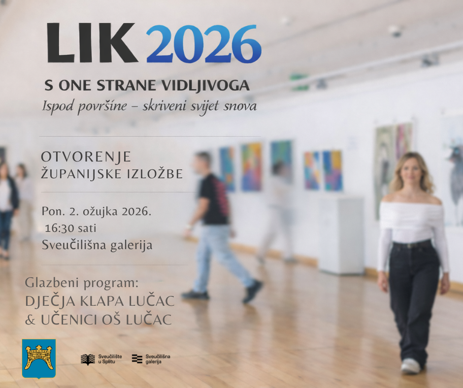 Danas s početkom u 16:30 sati u Sveučilišnoj galeriji bit će otvorena županijska izložba natjecanja LIK 2026, na kojoj će biti predstavljeni najuspješniji radovi učenika osnovnih i srednjih škola Splitsko-dalmatinske županije iz područja vizualnih umjetnosti i dizajna. Uoči samog otvorenja u galerijskom prostoru u tijeku su posljednje pripreme. Postavljaju se radovi i provjeravaju tehnički detalji, a kako bi se u najboljem svjetlu javnosti predstavila kreativnost mladih autora.