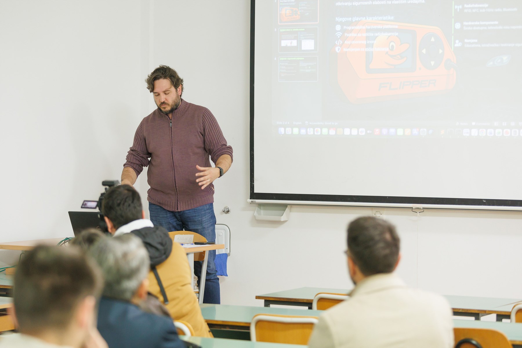 Na radionici su predstavljene i najvažnije istraživačke teme i aktualni trendovi i izazovi u energetici i računarstvu koji oblikuju medijski prostor. Završni dio događanja bio je rezerviran za panel raspravu o prenošenju znanstvenih informacija, prepoznavanju pouzdanih izvora i suzbijanju dezinformacija. Panel je moderirala Sandra Barčot, a sudjelovali su izv. prof. Petar Šolić, prof. dr. sc. Toni Perković i izv. prof. dr. sc. Vladimir Pleština, koji su kroz živu raspravu naglasili koliko je važno da znanstveni glas bude jasan, dostupan i vjerodostojan. Sudionici su saznali hoće li umjetna inteligencija zaista prijetiti energetskoj stabilnosti, koliko su fotonaponske elektrane učinkovite i koliko štete ili koriste okolišu, te je li realistično da se svijet u idućih deset godina u potpunosti oslanja na Sunčevu energiju. Među temama koje su izazvale najveću pozornost bili su popularni tehnološki „mit-busteri“ - Flipper Zero i Bluetooth slušalice. Flipper Zero, često prikazivan u medijima kao mali „hakerski alat za krađu automobila“, pokazao se daleko manje opasnim nego što naslovnice sugeriraju: pravi rizici dolaze iz ranjivosti automobilskih sigurnosnih sustava, a ne iz samog gadgeta. Kod Bluetooth slušalica jasno je pokazano kako su razine zračenja iznimno niske i gotovo zanemarive, a zanimljiv „fun fact“ pobudio je osmijehe sudionika - konzumacija crvenog mesa rizičnija je po zdravlje od svakodnevnog korištenja bežičnih slušalica.