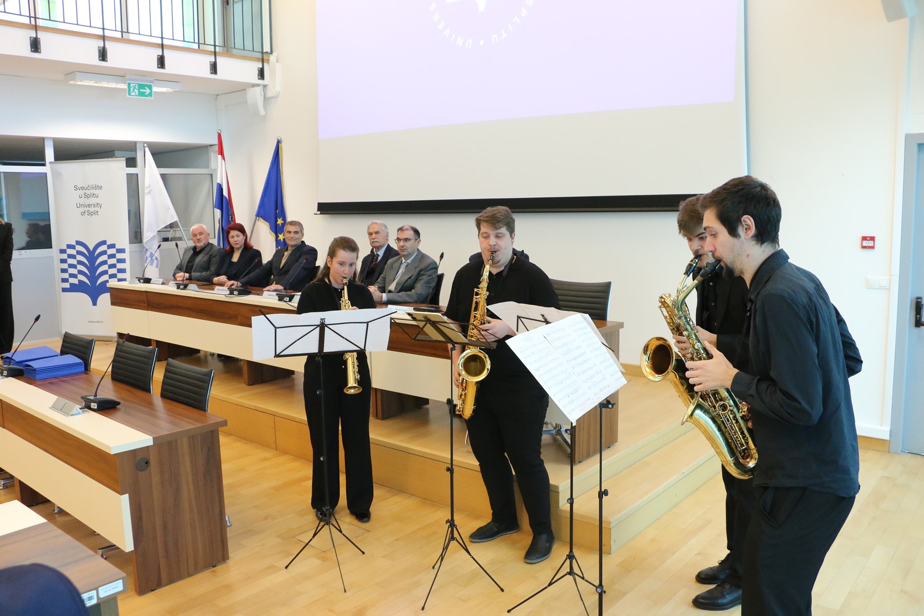 U glazbenom dijelu programa nastupio je Kvartet saksofona deOz s Umjetničke akademije u Splitu u klasi izv. prof. art. Gordana Tudora. Kvartet čine: Ruta Špoljarić (sopran saksofon), Matija Perić (alt saksofon), Martin Zdelar (tenor saksofon) i Adrian Seleš (bariton saksofon). Izveli su skladbu Georgea Gershwina An American in Paris u aranžmanu Philipea Marilliea te Merry-Go-Round of Life Joea Hisaishija u aranžmanu Gabi Šerić.
