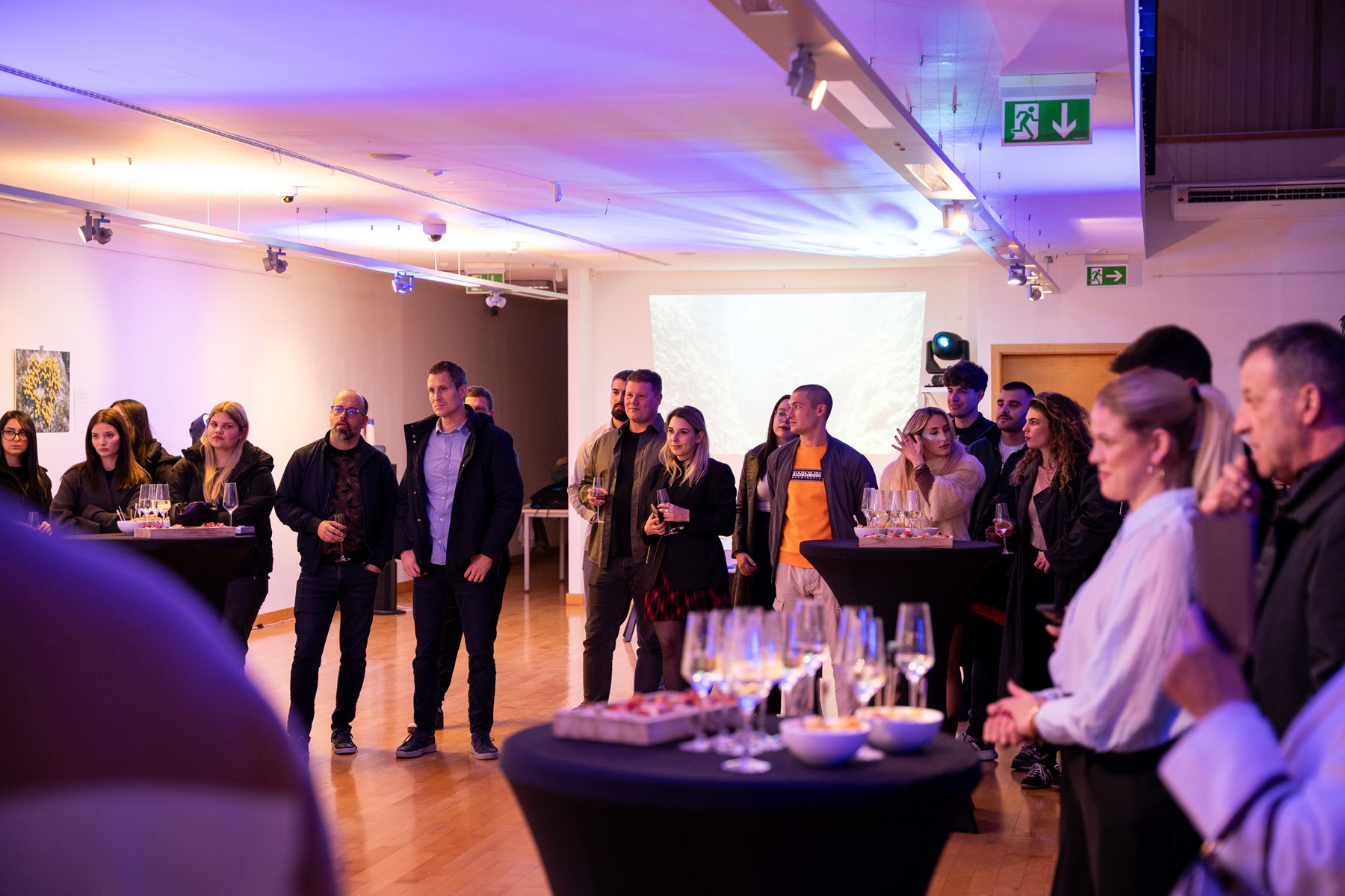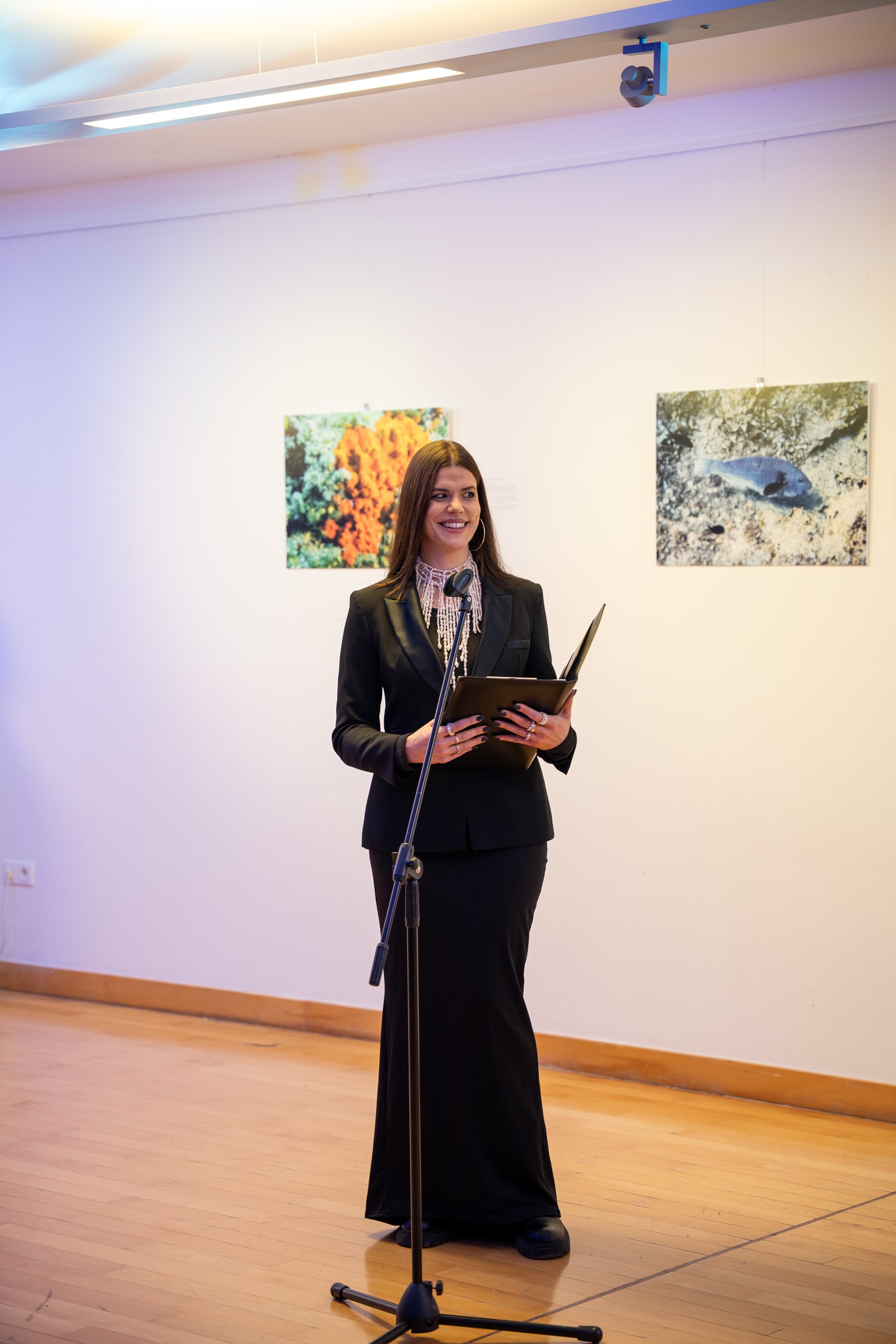 Voditeljica Sveučilišne galerije Helena Trze Jakelić je, uz srdačne pozdrave okupljenima, izrazila zahvalnost na lijepoj izložbi, kojom je galerijski prostor na kampusu postao dio velikog plavetnila.