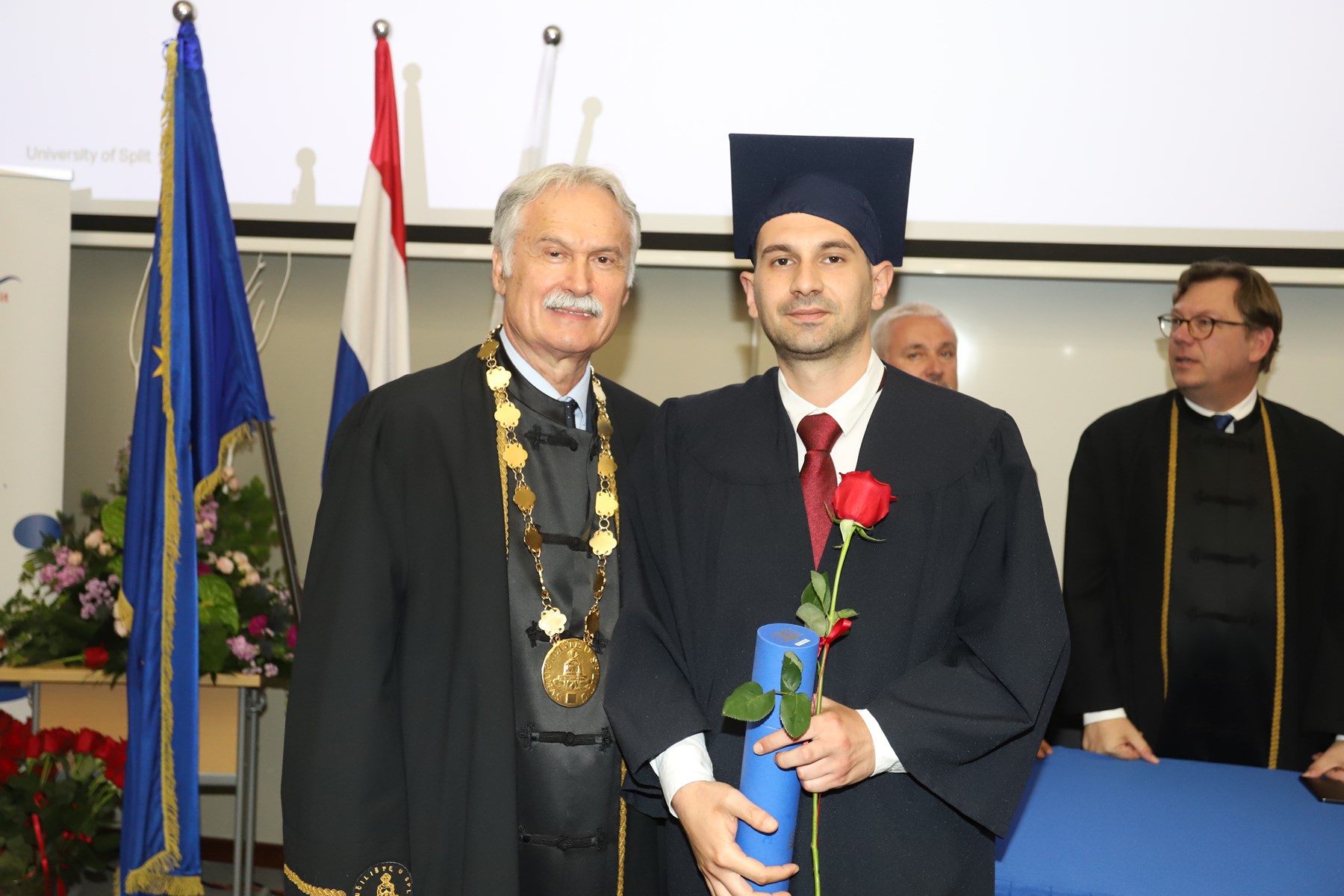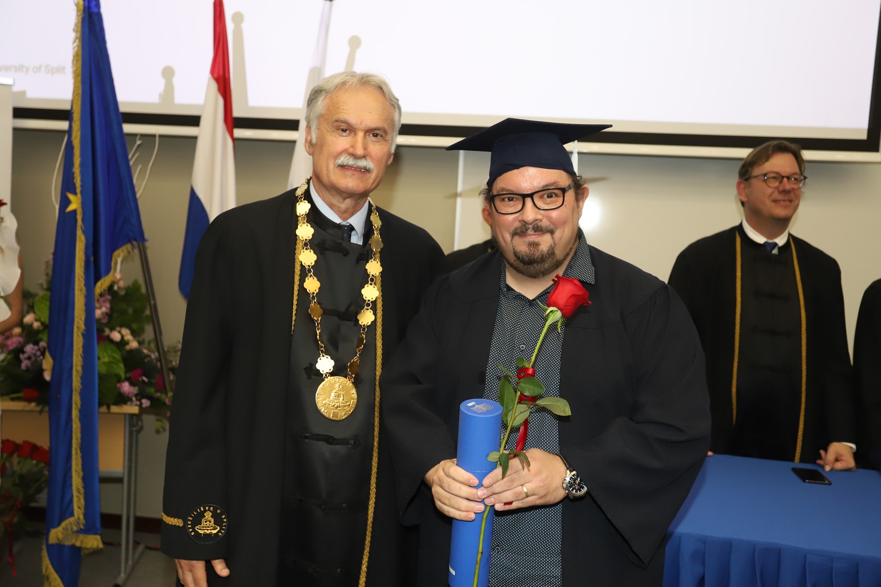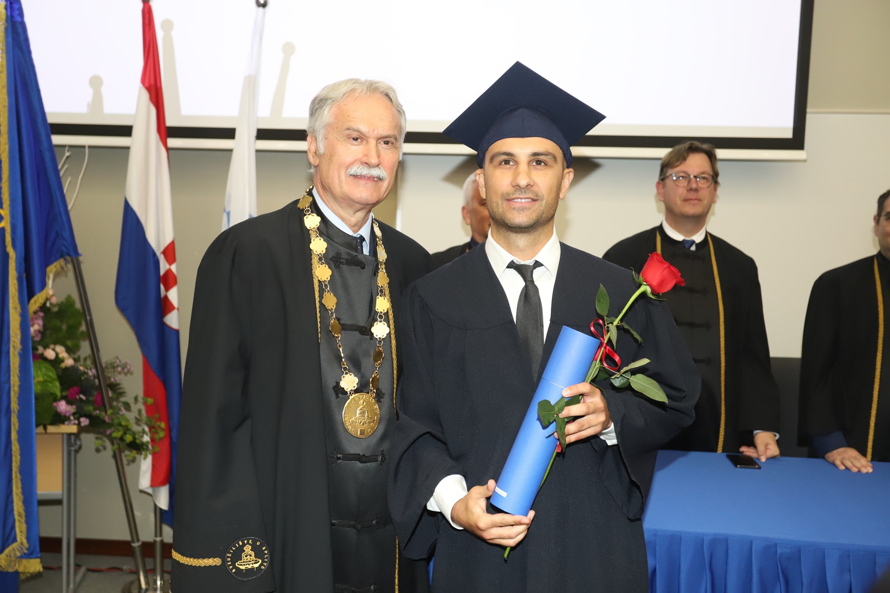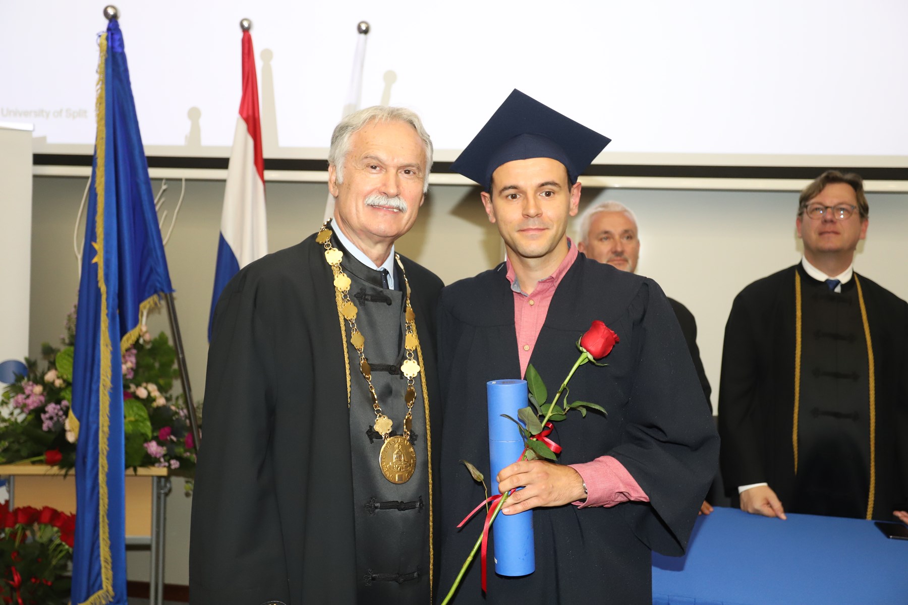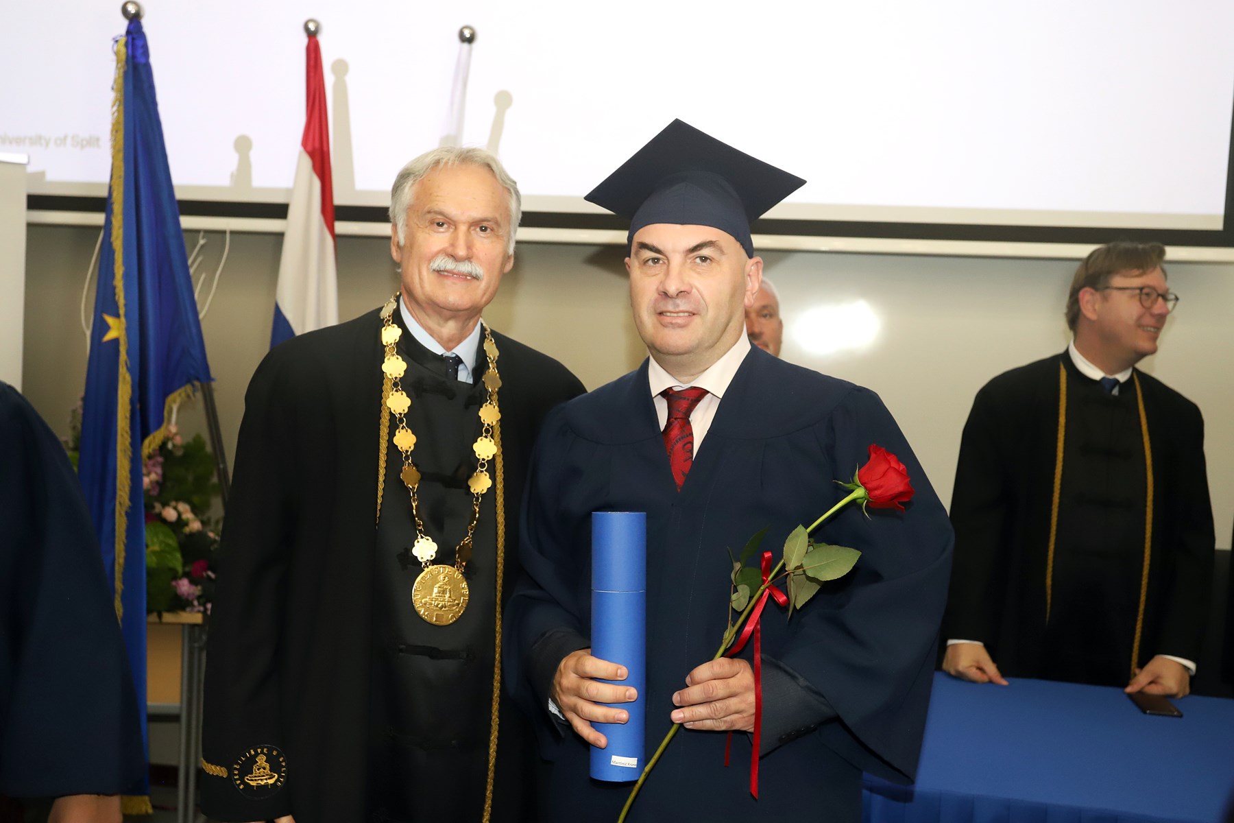 Doktorati podrazumijevaju ulazak u veliko znanstveno polje istraživanja novog i istinitog. Što ih je više, više je i objavljenih znanstvenih radova te samim time rastu vidljivost i utjecaj našeg sveučilišta na međunarodnoj sceni - na dosege se već sada ponosimo', kazao je rektor Ljutić. U tom se duhu i prigodno obratio novim doktorima znanosti. Govoreći o znanstvenicima, napomenuo je ujedno kako ih oko 1600 radi na Sveučilištu u Splitu.