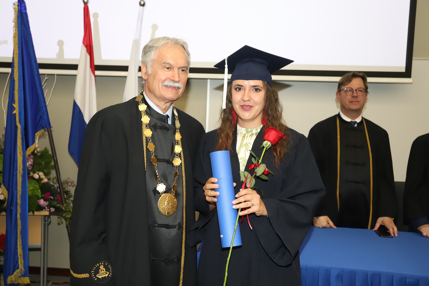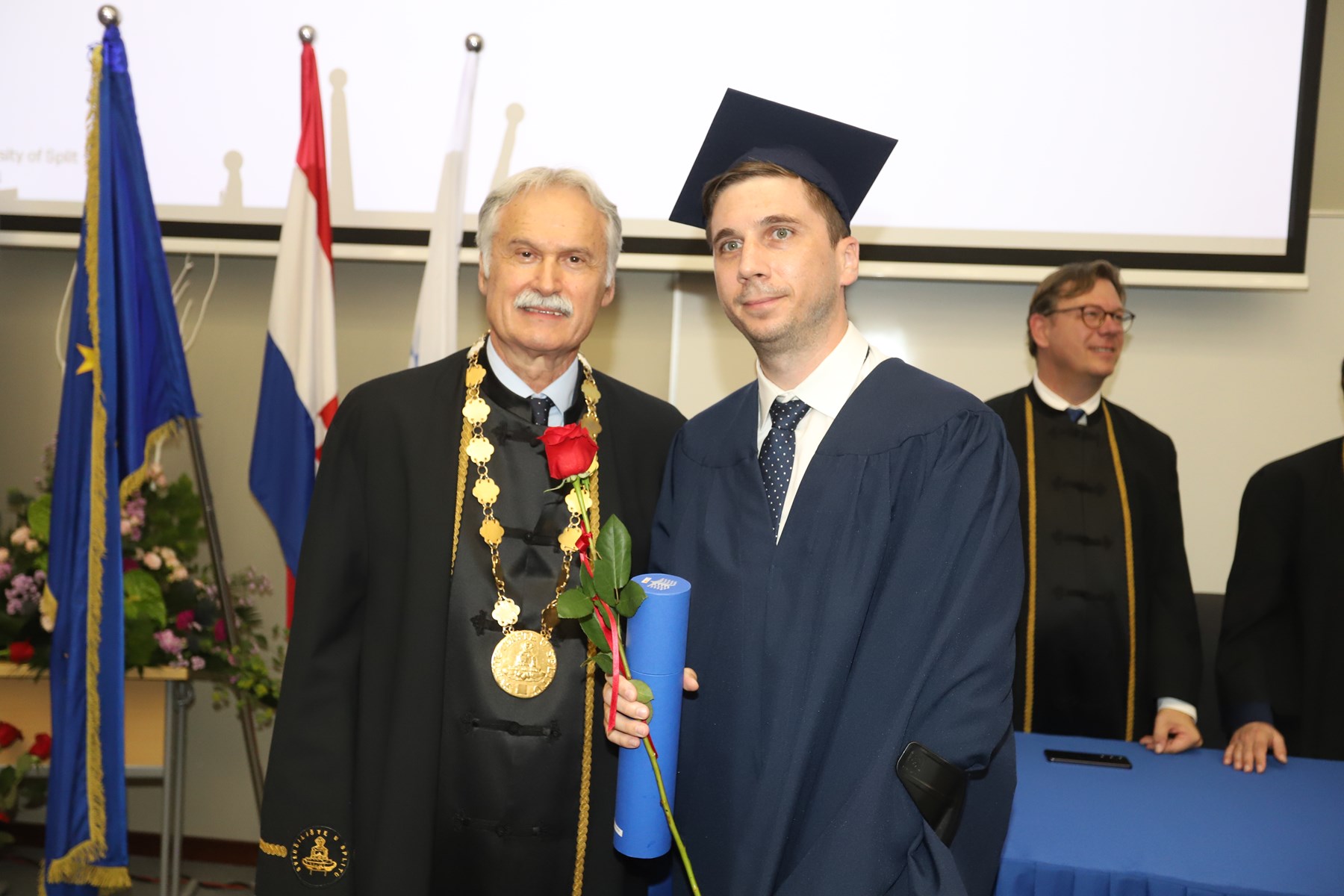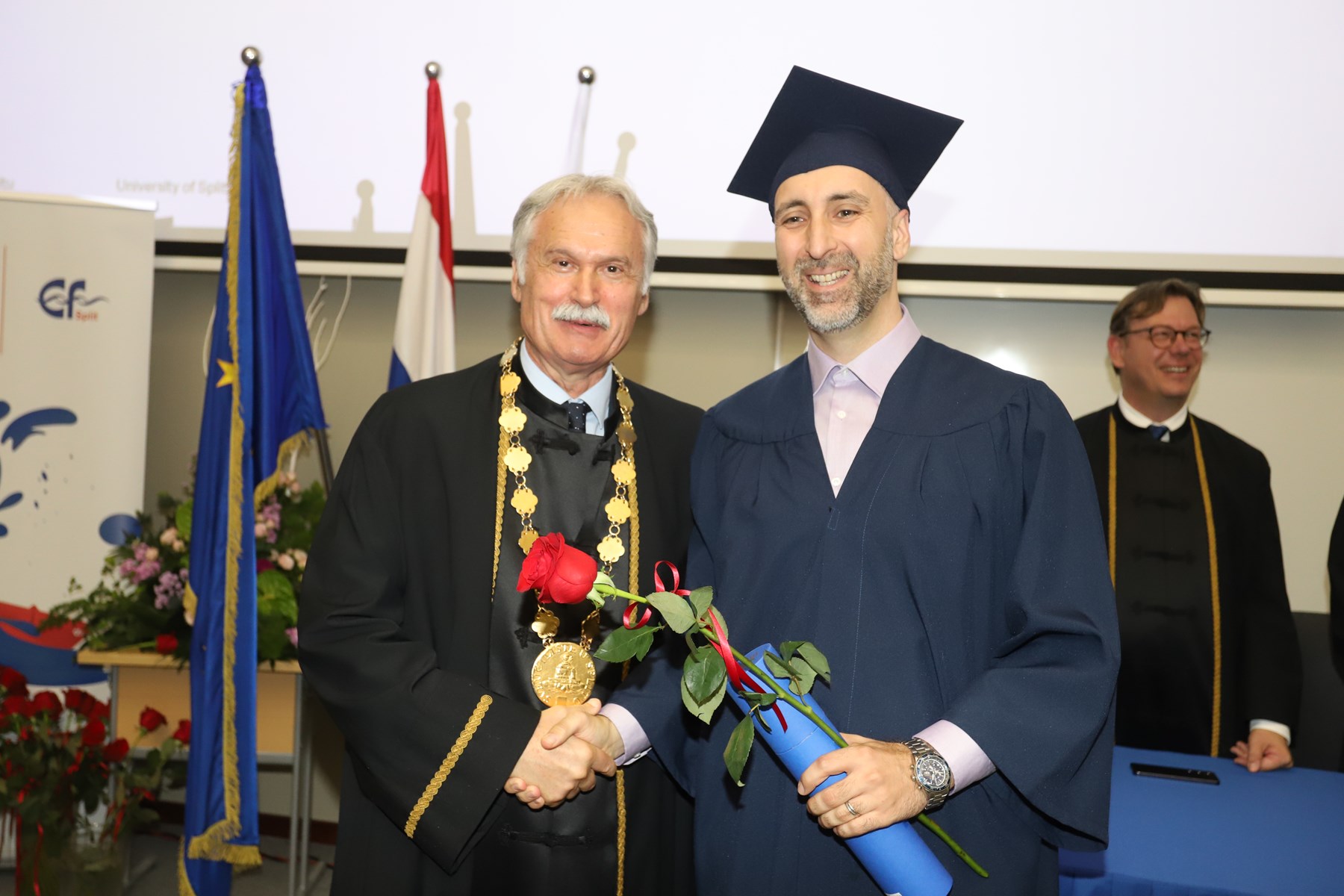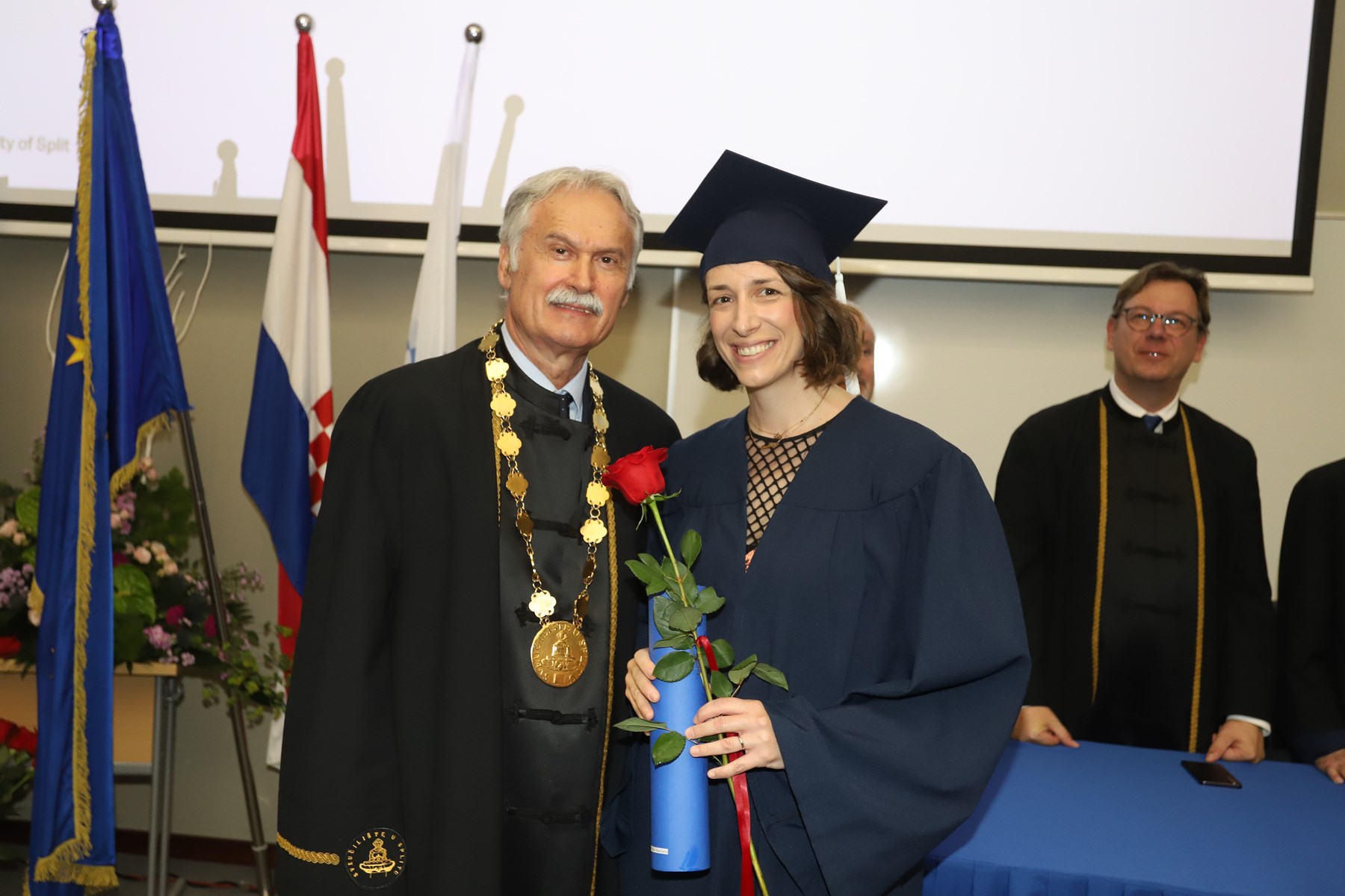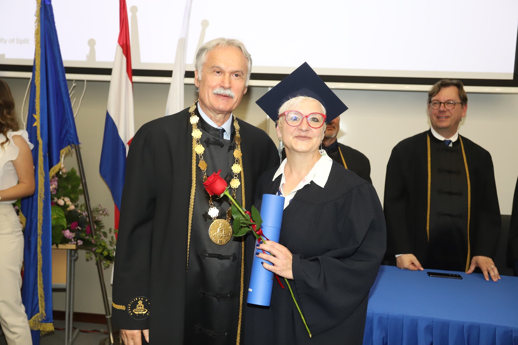 Doktorati podrazumijevaju ulazak u veliko znanstveno polje istraživanja novog i istinitog. Što ih je više, više je i objavljenih znanstvenih radova te samim time rastu vidljivost i utjecaj našeg sveučilišta na međunarodnoj sceni - na dosege se već sada ponosimo', kazao je rektor Ljutić. U tom se duhu i prigodno obratio novim doktorima znanosti. Govoreći o znanstvenicima, napomenuo je ujedno kako ih oko 1600 radi na Sveučilištu u Splitu.