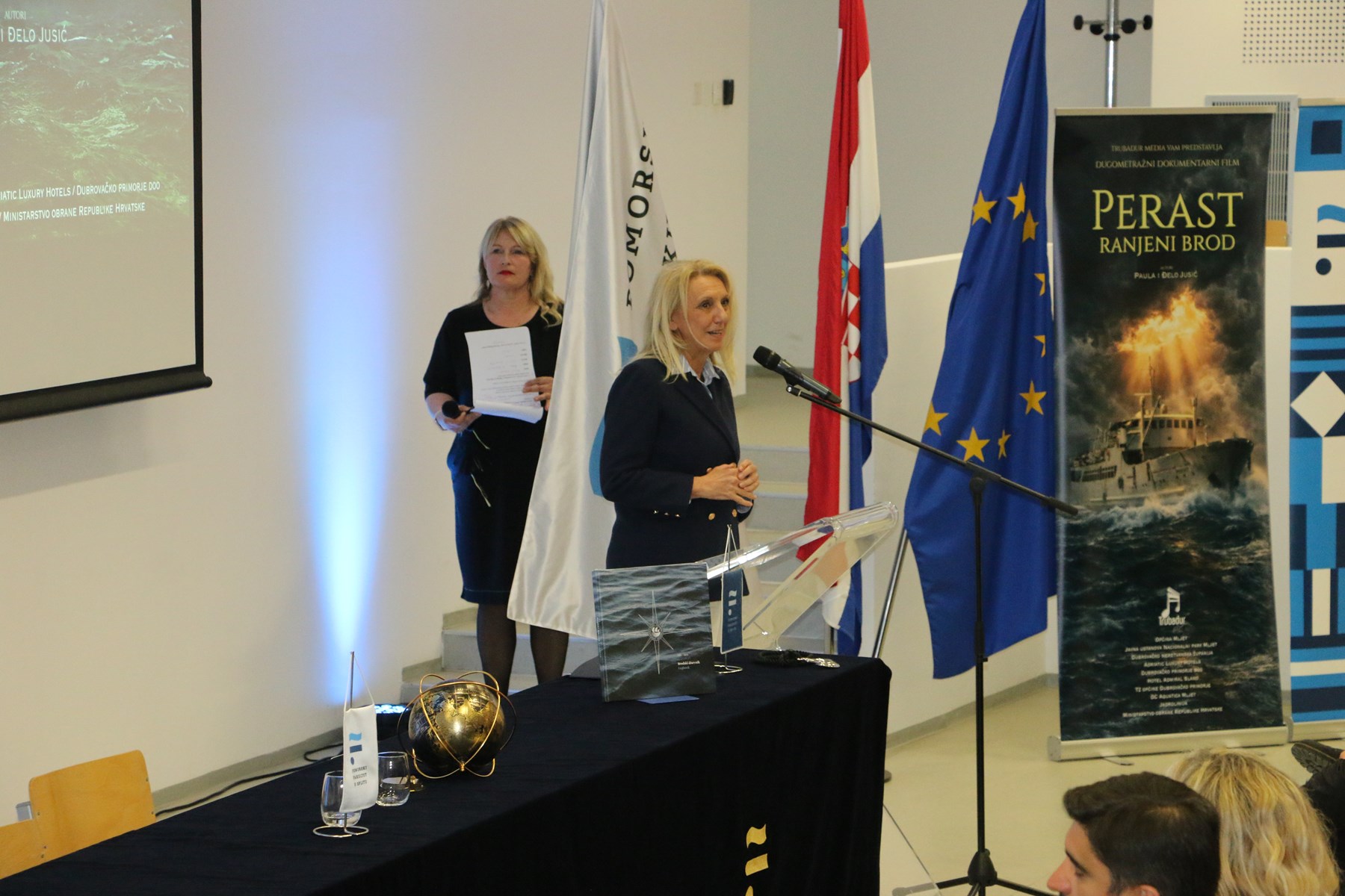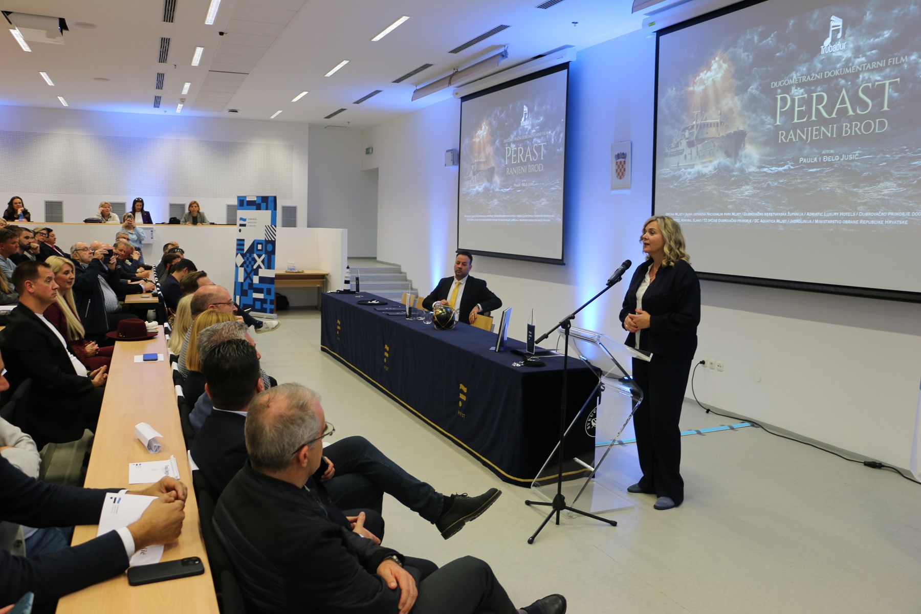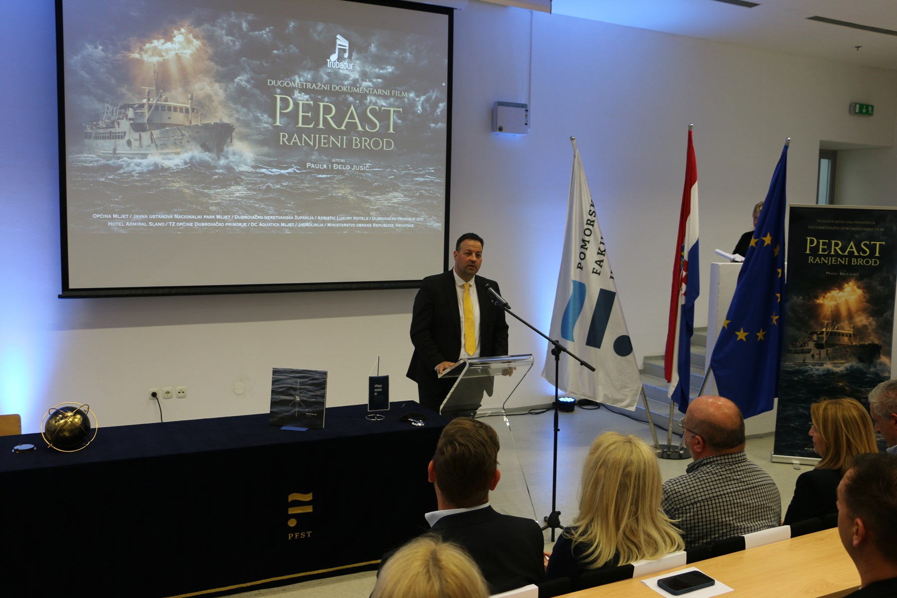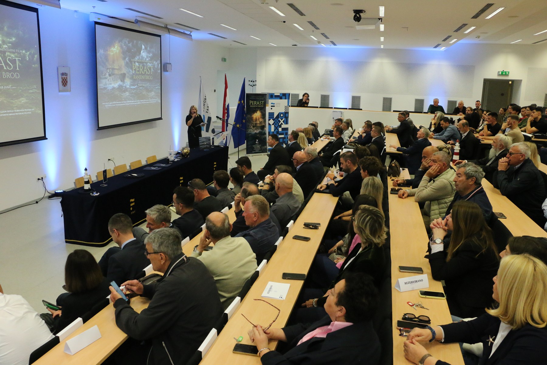 Projekcija dugometražnog dokumentarnog filma „Perast - ranjeni brod“, autora Paule i Đela jr. Jusić, održana je u utorak 7. travnja na Pomorskom fakultetu. Film donosi snažnu i emotivnu priču o legendarnom Jadrolinijinom brodu Perast, ali i o tragičnoj sudbini koja je u Domovinskom ratu zadesila njegovu posadu, a prije Splita prikazan je na Mljetu i u Dubrovniku.