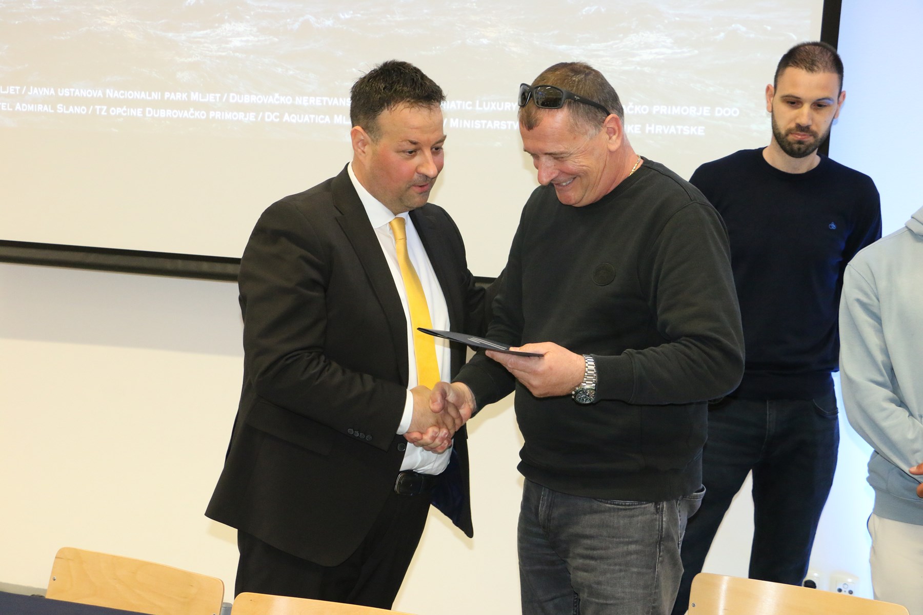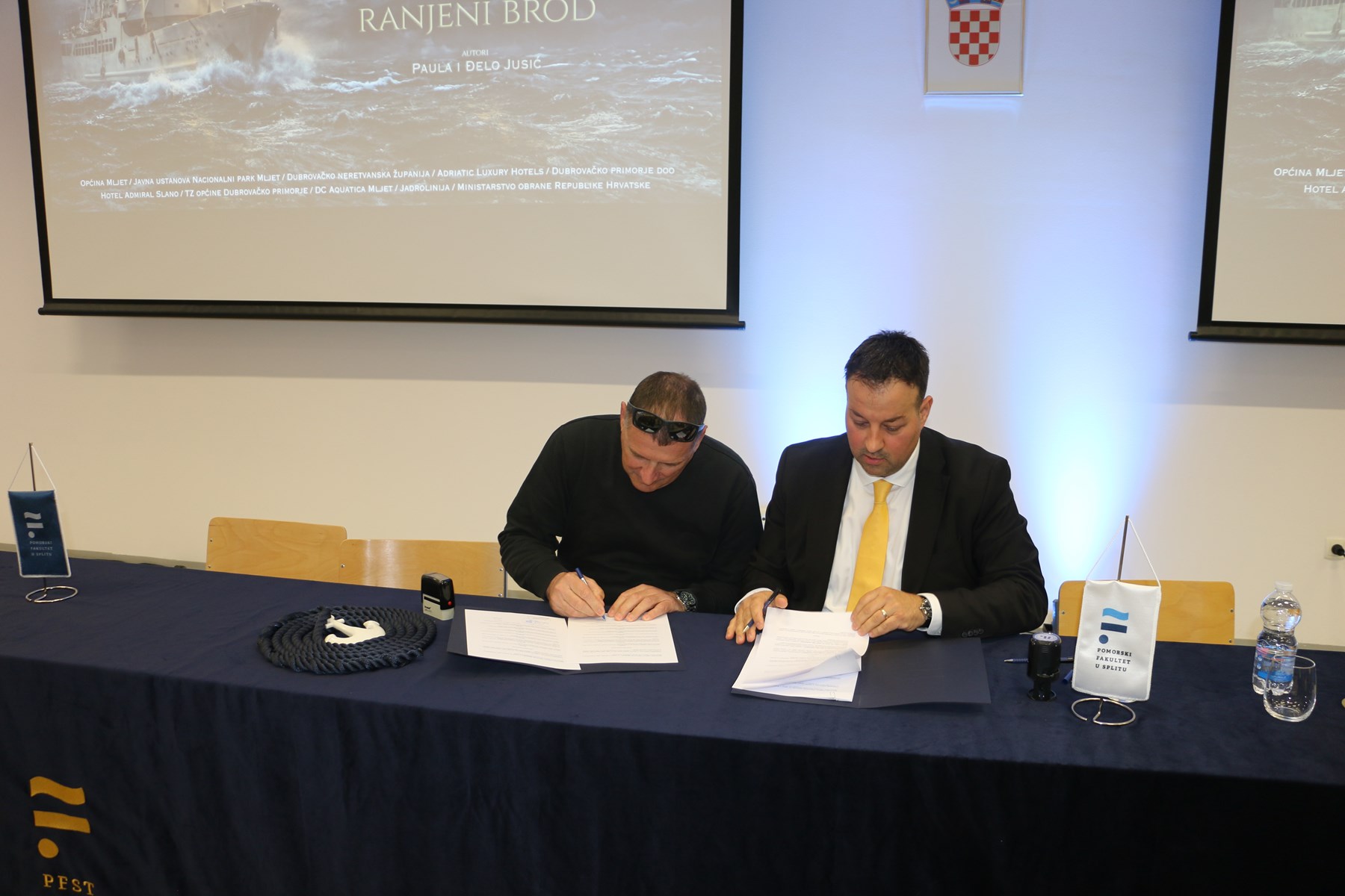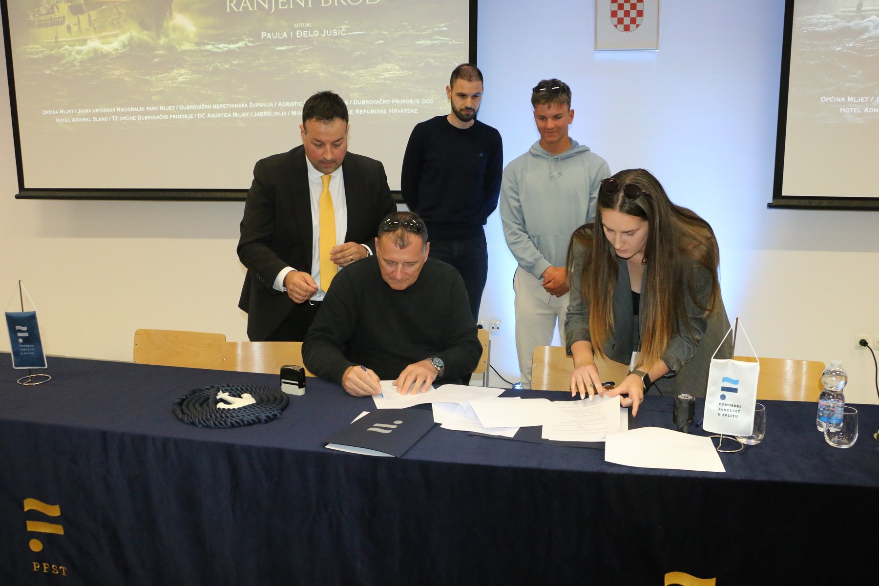 Prije projekcije filma Ivan Mladin, predsjednik Hrvatske Udruge privatnih brodara i dekan Pomorskog fakulteta prof.dr.sc. Ivan Peronja te studenti Stella Musa, druga godina prijediplomskog studija Pomorska nautika, Ante Tešija, druga godina diplomskog studija Brodostrojarstvo i Josip Tafra, prva godina prijediplomskog studija Pomorske tehnike jahta i marina potpisali su ugovor o stipendiranju za potrebe studiranja i izobrazbe.