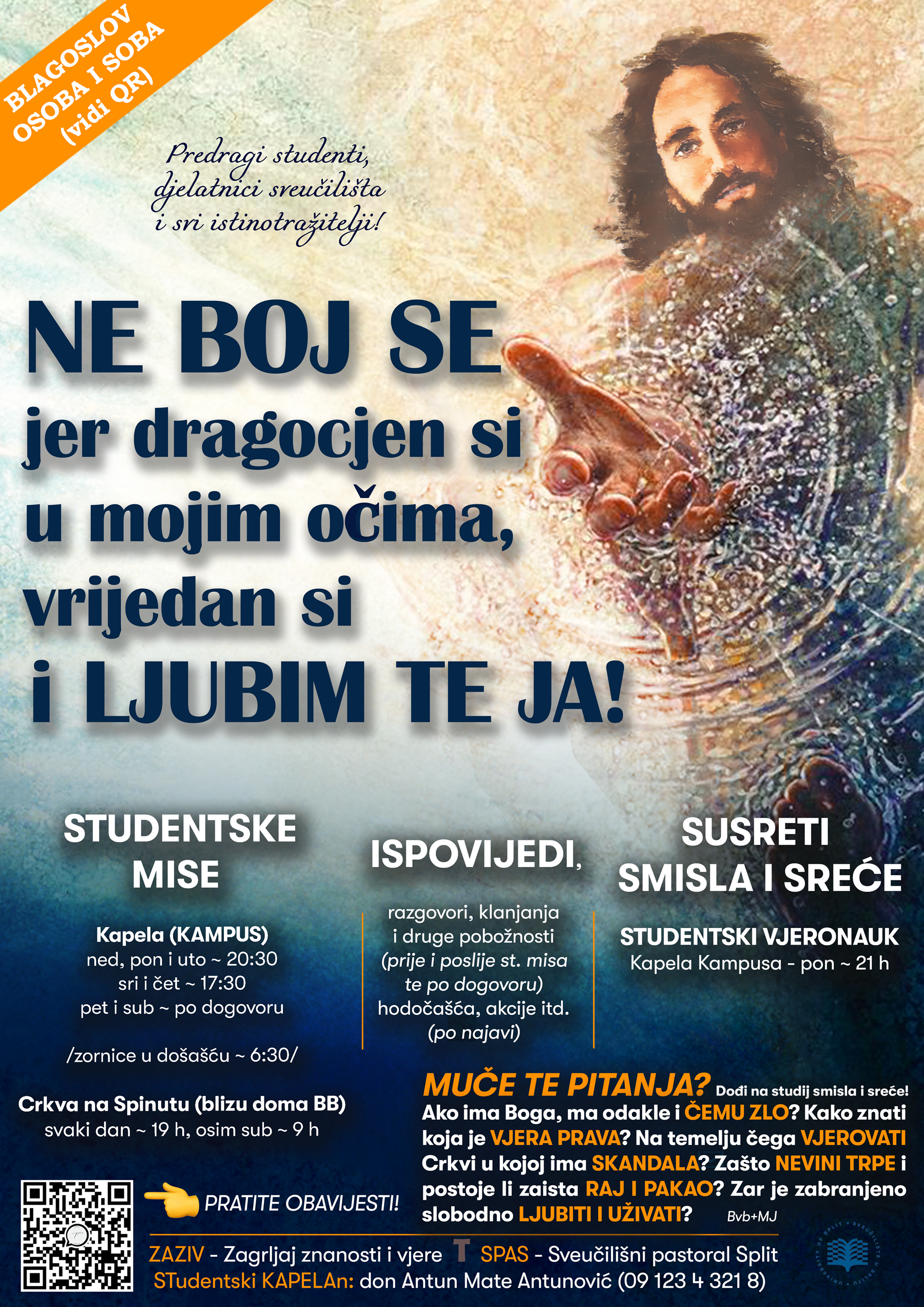 - Od srca Vas pozdravljam i rado blagoslivljam! Kratka su to pitanja, ali izazivaju poduži odgovor. No, pokušat ću iznijeti barem neke ključne stvari koje otvoren um i te kako uvjeravaju i oduševljavaju, ali ne prisiljavaju. Sažeto govoreći, neoborivo konvergentno dokazuje: osobnoga Boga - svrsihodna uzročnost i inteligibilnost stvorenoga; duhovnu dušu - sebesvjesna sloboda savjesti i čežnja za beskrajnom srećom i smislom u ljubavi i istini te pravednosti; Isusa Krista - kreposno i mučeničko svjedočanstvo očevidaca Njegove nenadmašive ljubavi i žrtve te uskrsnuća i uzašašća, jer nitko nikada ne bi tako kreposno uložio i mučenički položio život za nešto za što zna da je pogubna laž; Rimokatoličku Crkvu - izvornost potpunog kontinuiteta od Krista ovlaštene petrovske i apostolske službe koja je u korijenu papinske i biskupske službe.