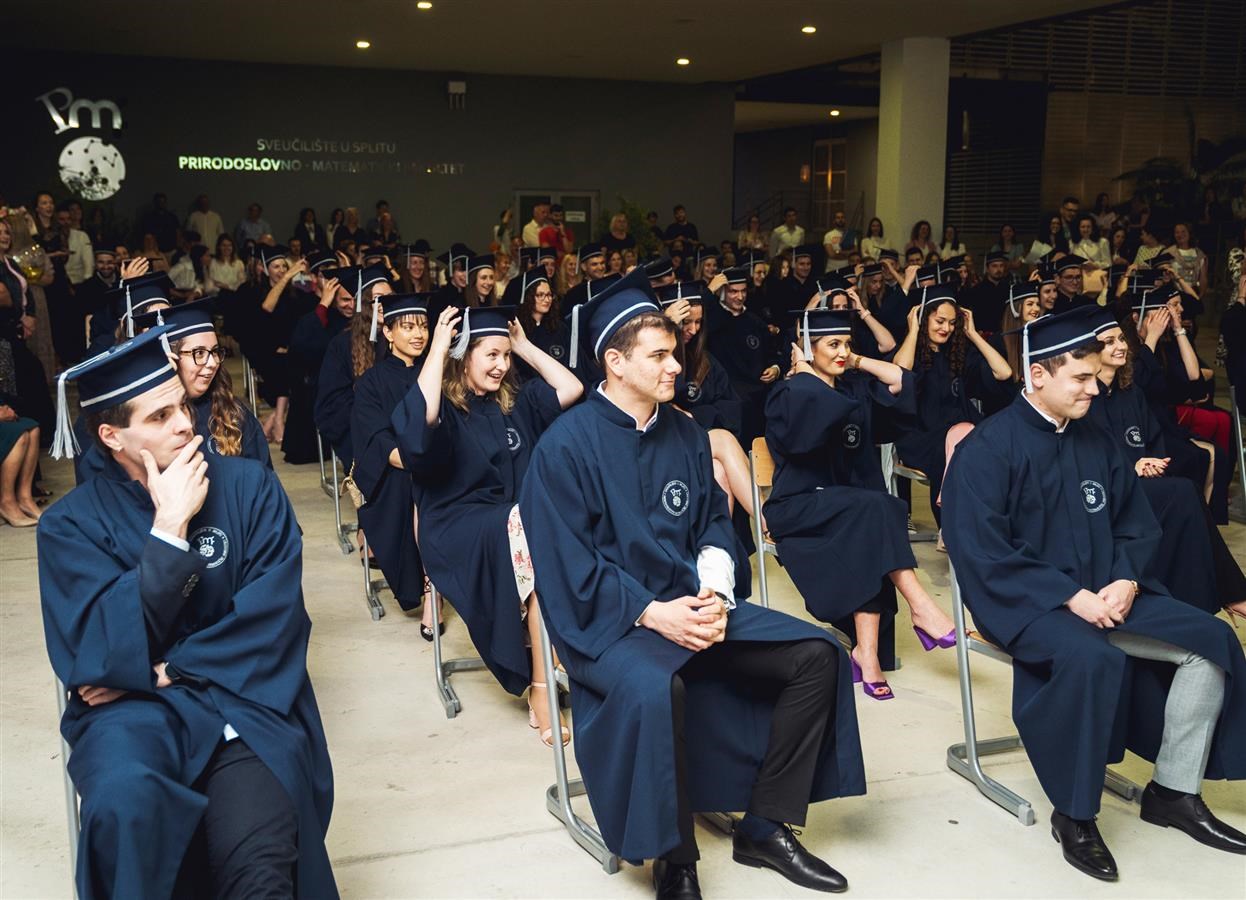 Svečane promocije sveučilišnih prvostupnika i magistara struke Prirodoslovno–matematičkog fakulteta u Splitu održane su u petak, 13. svibnja, na trgu ispred Zgrade tri fakulteta.