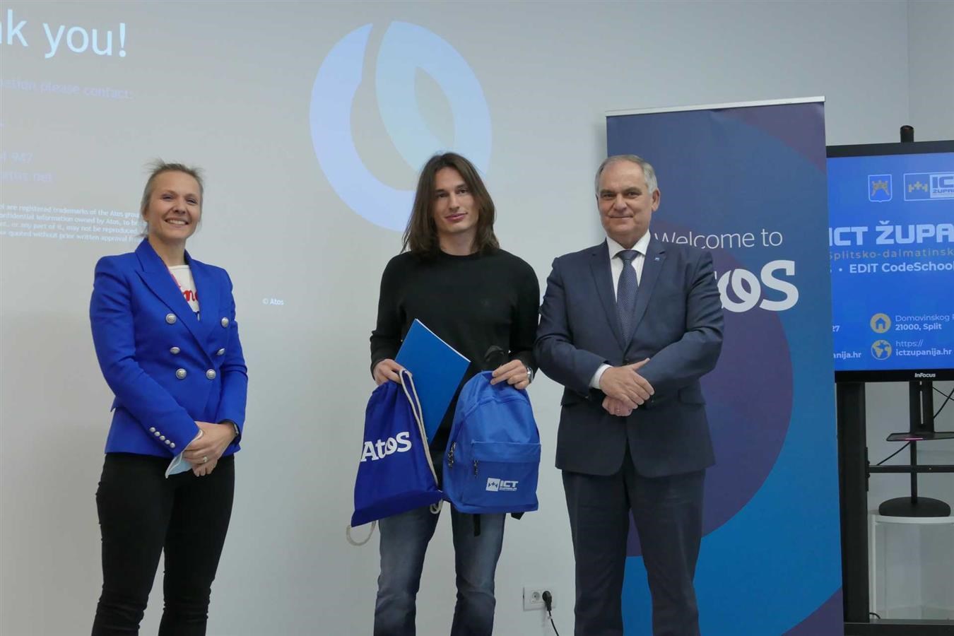 Stipendije su im na prigodnoj svečanosti u Predinkubacijskom i coworking centru SD županije - PICS@FESB uručili voditelj ATOS Hrvatska Globalnog delivery centra Boris Bajtl i splitsko-dalmatinski župan Blaženko Boban.